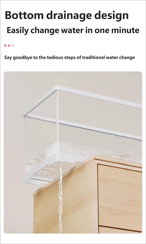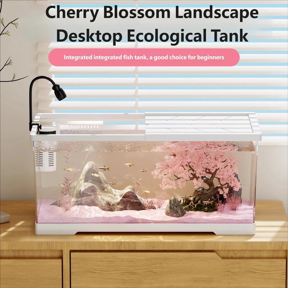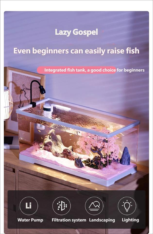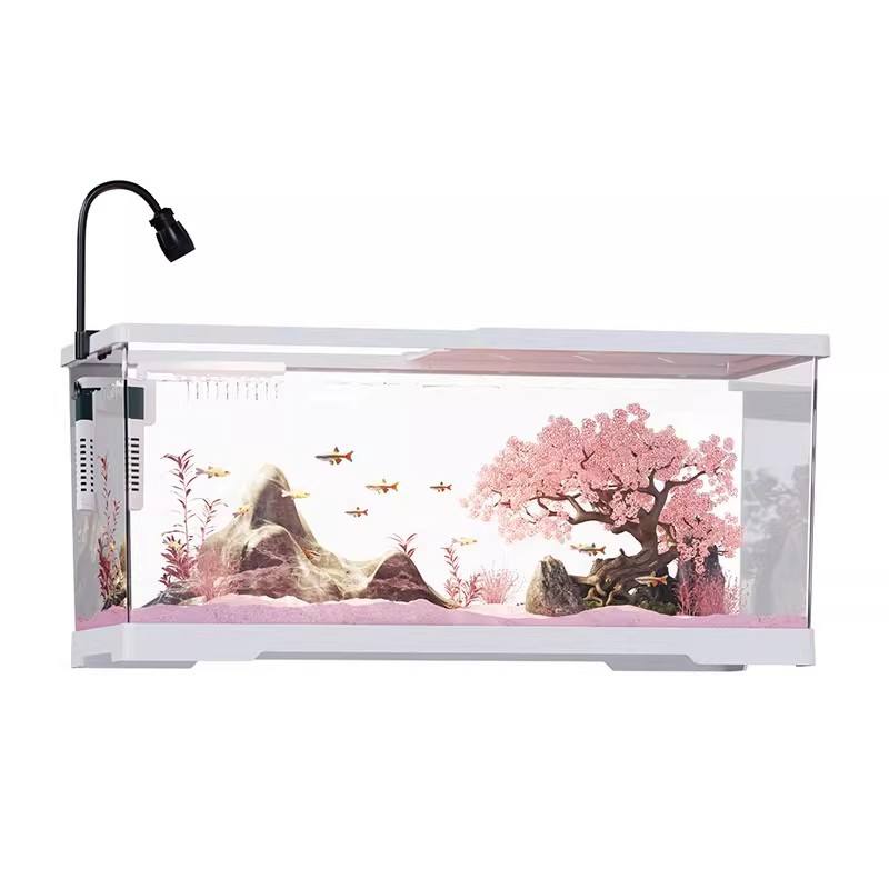 ตู้ปลาตั้งโต๊ะคุณภาพสูงแบบออลอินวัน พร้อมระบบกรองและเติมออกซิเจน ขนาด 5 ลิตร วัสดุพลาสติก ตกแต่งภูมิทัศน์สวยงาม เหมาะสำหรับเลี้ยงปลาทอง ใช้ได้ทั้งในบ้านและนอกบ้าน