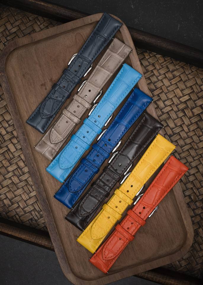สายนาฬิกาหนังจระเข้ทำมือสุดหรู คุณภาพสูง หนังจระเข้แท้ ระบายอากาศได้ดี กันน้ำ พร้อมสลักโลโก้ตามสั่ง