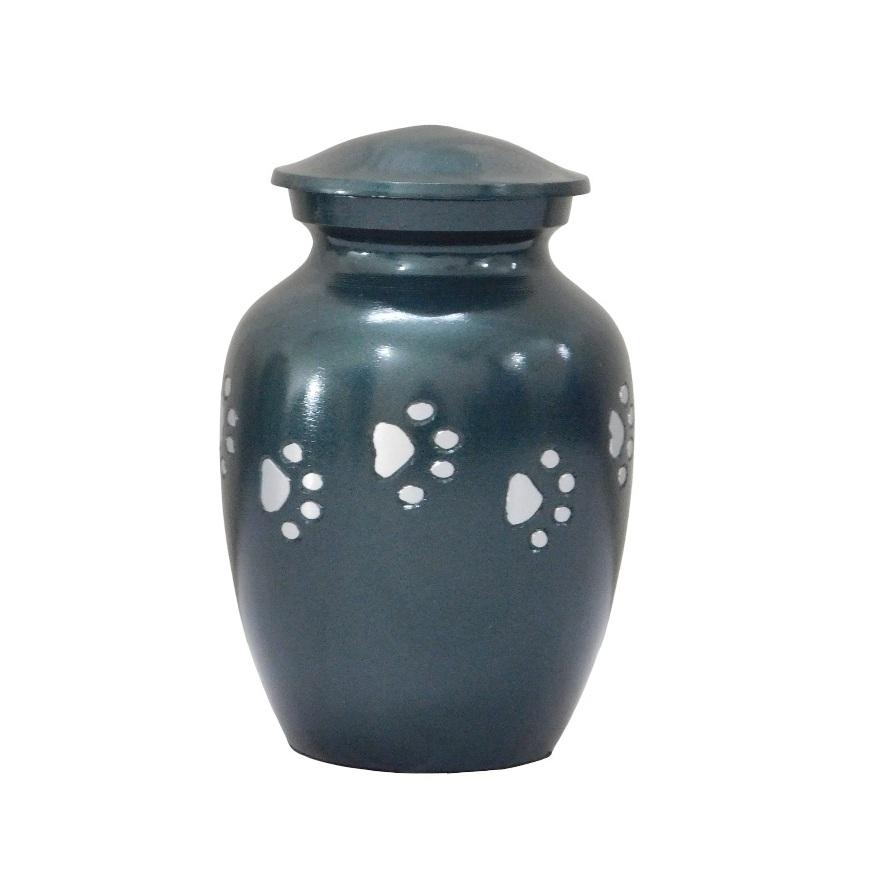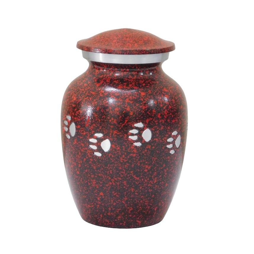 โกศอลูมิเนียมสำหรับงานศพสัตว์เลี้ยงพร้อมพิมพ์อุ้งเท้าและโกศโลหะสำเร็จรูปสีชมพูสำหรับขี้เถ้ามนุษย์