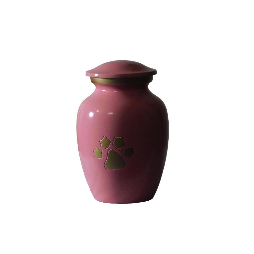 โกศอลูมิเนียมสำหรับงานศพสัตว์เลี้ยงพร้อมอุ้งเท้าพิมพ์สีทองและชมพูโกศโลหะสำเร็จรูปสำหรับขี้เถ้ามนุษย์