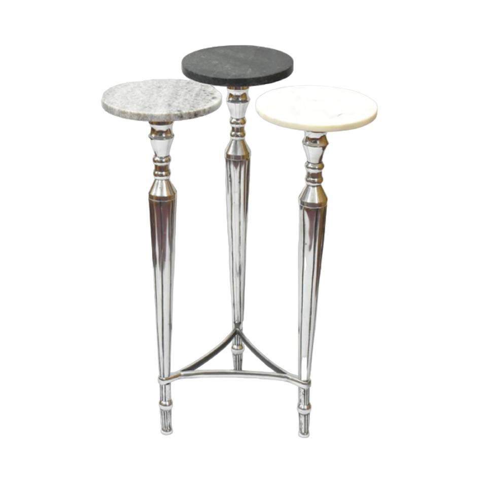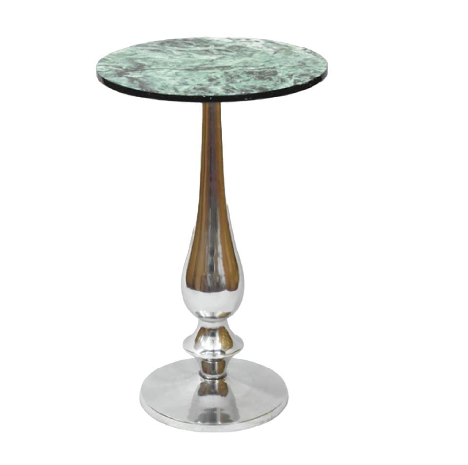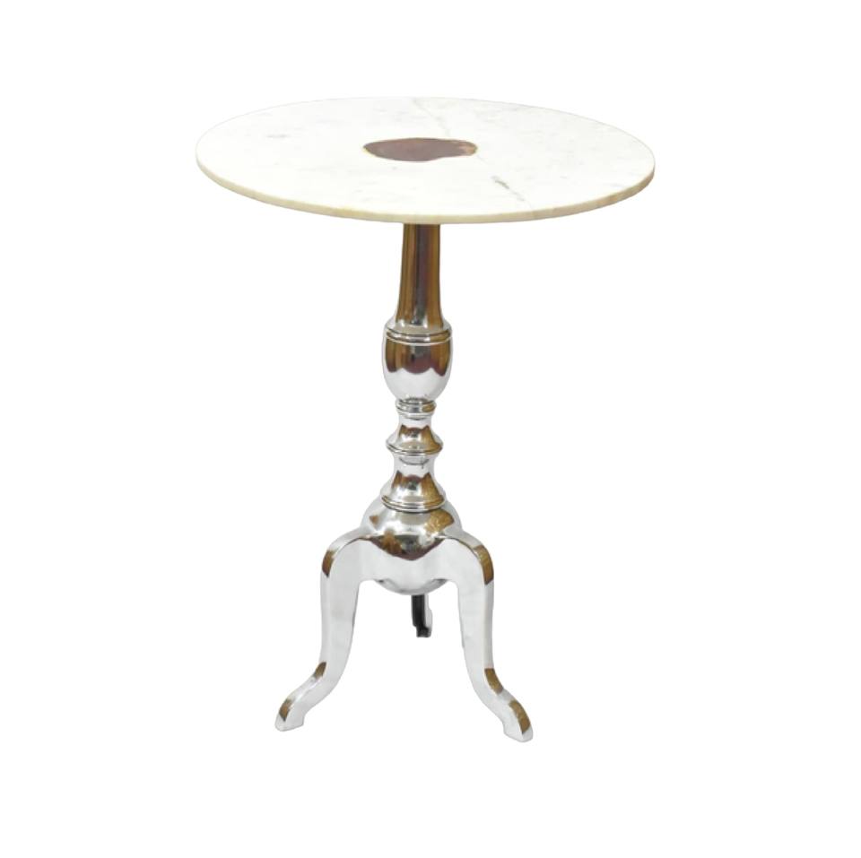 โต๊ะข้างอะลูมิเนียมทรงกลมพร้อมขาโลหะสีดำและหินอ่อนด้านบนสำหรับห้องนั่งเล่น