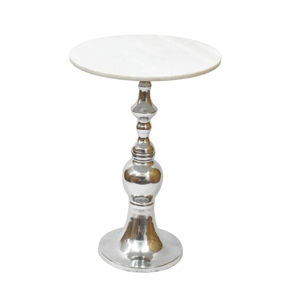 High Quality Aluminium Round Coffee Side Table With Metal Base Polish Finished and Top Marble for Living Room