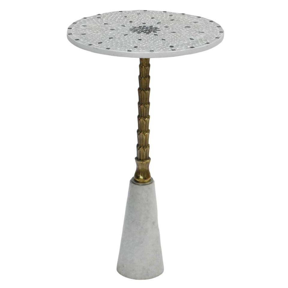 โต๊ะอลูมิเนียมทรงกลมพร้อมลายดอกไม้ด้านบนโต๊ะกาแฟโลหะสำเร็จรูปทำจากนิกเกิลด้านล่างหินอ่อน