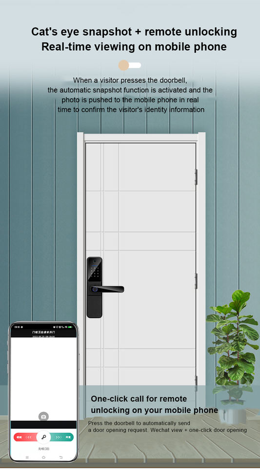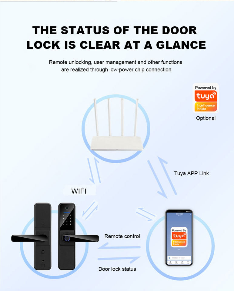 ตัวล็อคมือจับประตูอัจฉริยะทำจากอลูมิเนียมอัลลอยด์พร้อมลายนิ้วมือสำหรับแสดงประตูไม้แก้ว