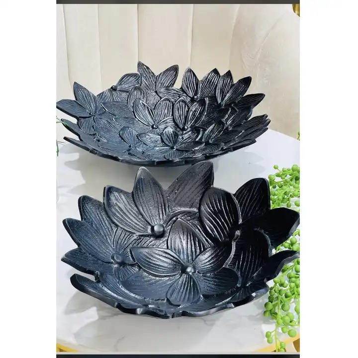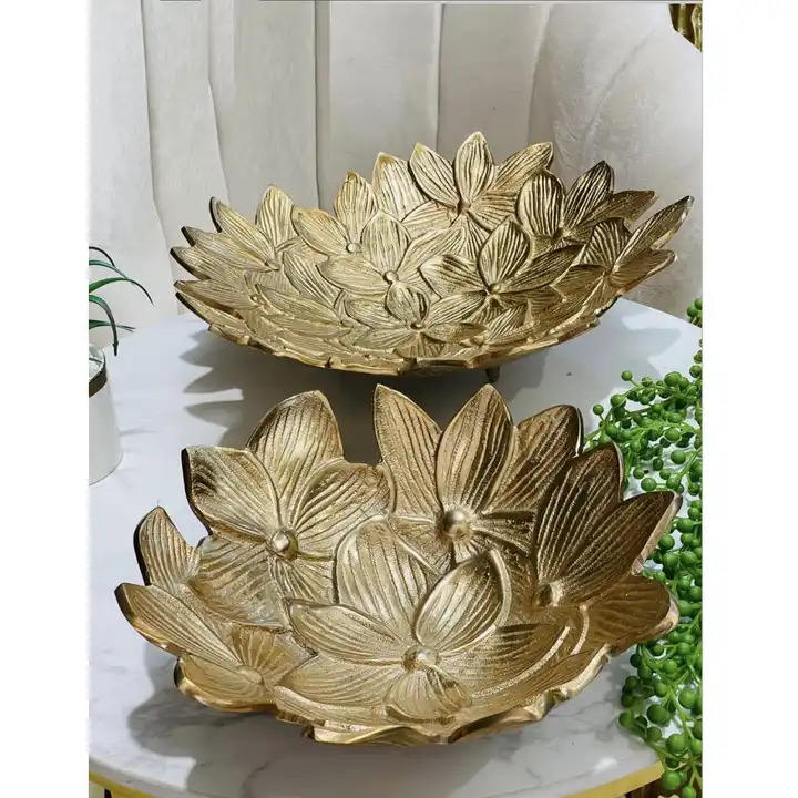 ชามเสิร์ฟตกแต่งทำจากอลูมิเนียมพร้อมดีไซน์ลายใบไม้และตกแต่งห้องครัว