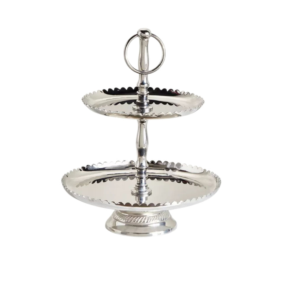 ชั้นวางเค้ก 3 ชั้น อลูมิเนียมและเหล็กคุณภาพสูง สีเงินขัดเงา สำหรับงานแต่งงาน วันเกิด และน้ำชายามบ่าย