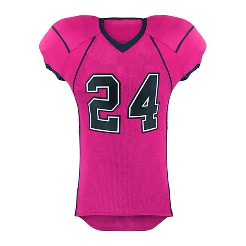 เสื้อฟุตบอลอเมริกันคุณภาพสูง ปักชื่อทีมและโลโก้ได้ตามต้องการ น้ำหนักเบา ระบายอากาศได้ดี แห้งเร็ว ป้องกันรังสียูวี UPF 50 แขนสั้น