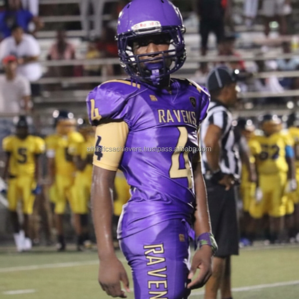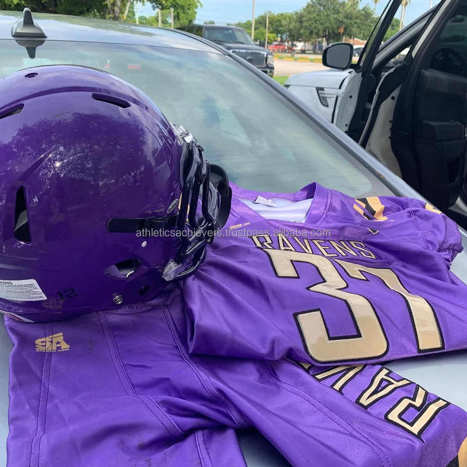 เสื้อฟุตบอลอเมริกันสำหรับผู้ใหญ่เด็กเยาวชนชุดทีมพิมพ์ซับลิเมชันตามสั่งแขนสั้น