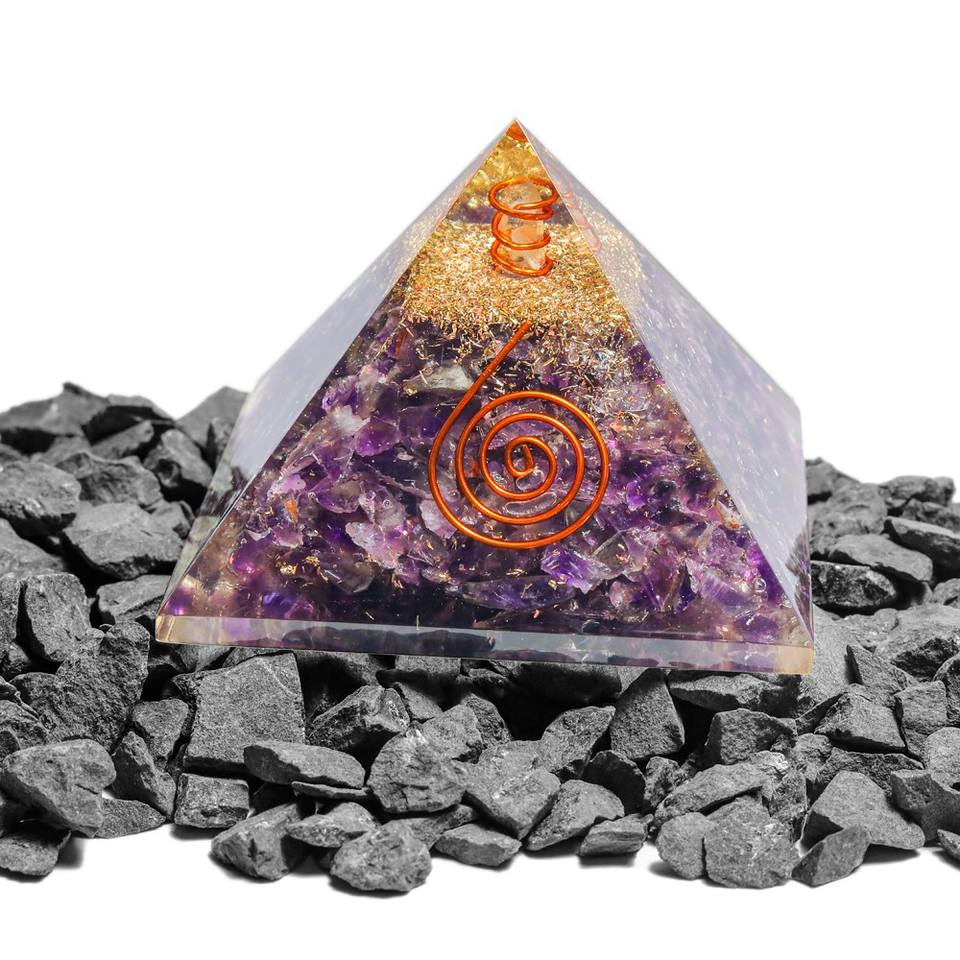 พีระมิดอเมทิสต์ออร์โกไนต์ทรงพีระมิดแกะสลักสไตล์ฮวงจุ้ยสำหรับตกแต่งบ้านและเพิ่มความรักให้กับพลังงาน