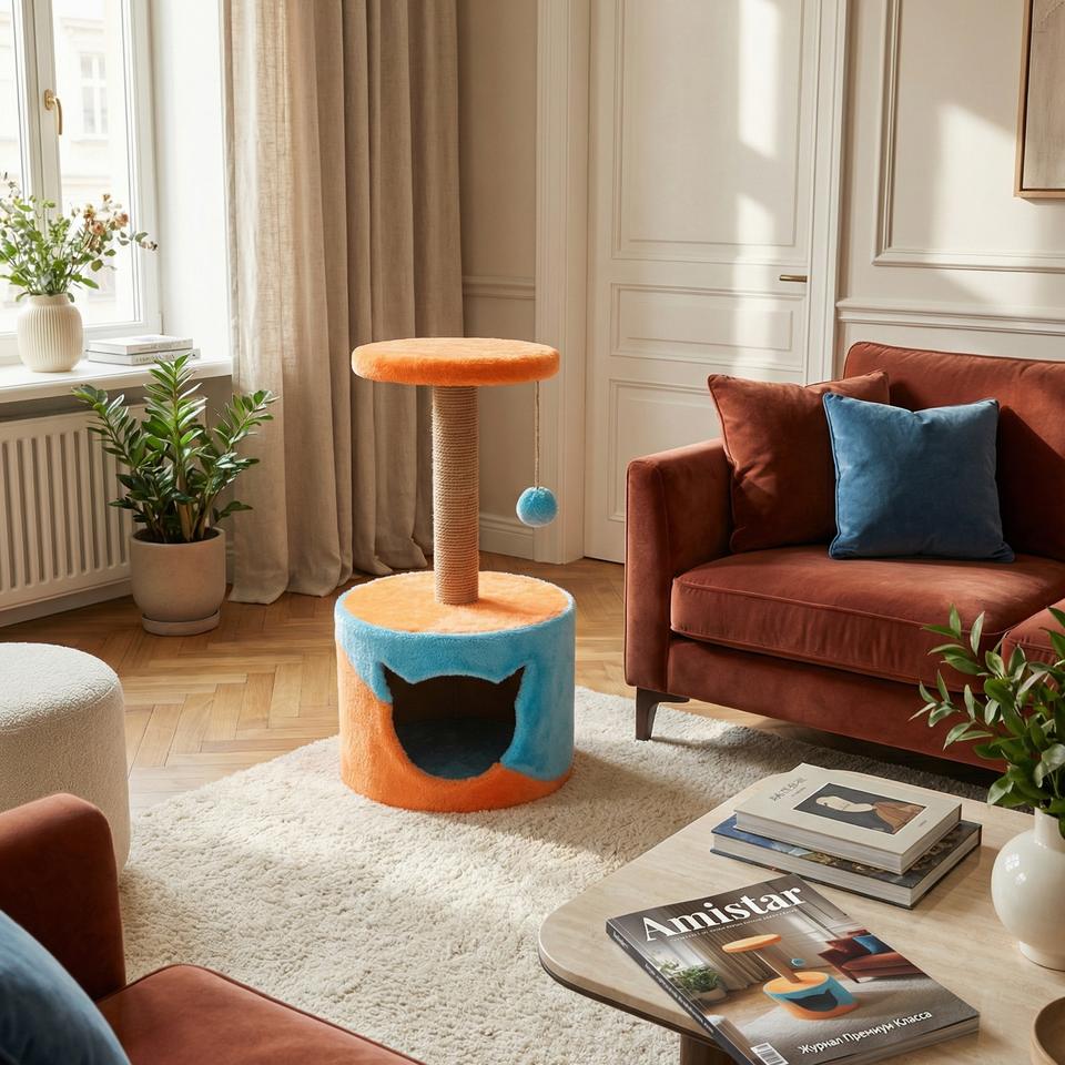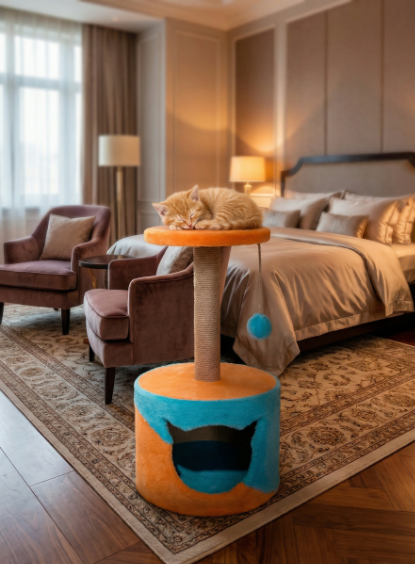ที่เกาในปราสาทแมวอเมตาสดใสสำหรับแมวทุกขนาด