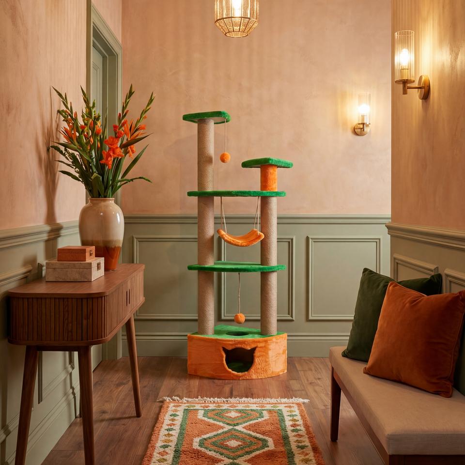 ทนทาน, ปลอดภัย, ประกอบง่าย, พื้นที่ขนาดใหญ่, ความเป็นส่วนตัวของโพรงต้นไม้, เป็นมิตรกับสิ่งแวดล้อม, ต้นไม้แมว, หลายชั้น, ของเล่นแมว, ที่ข่วนแมว