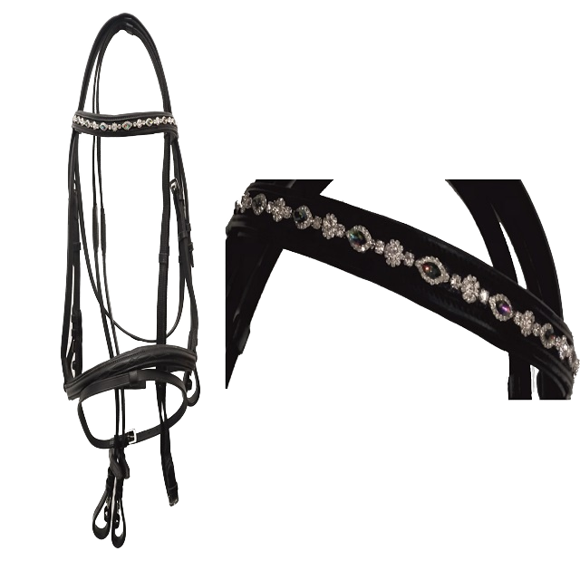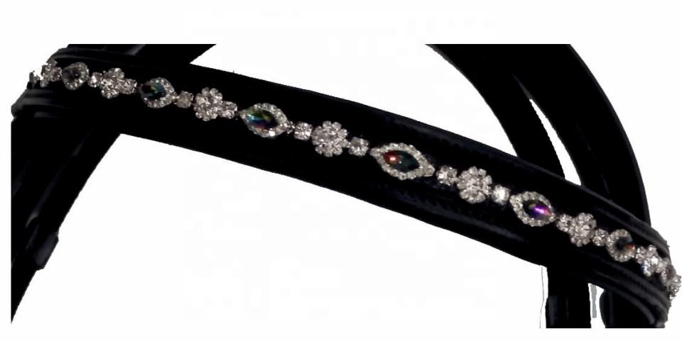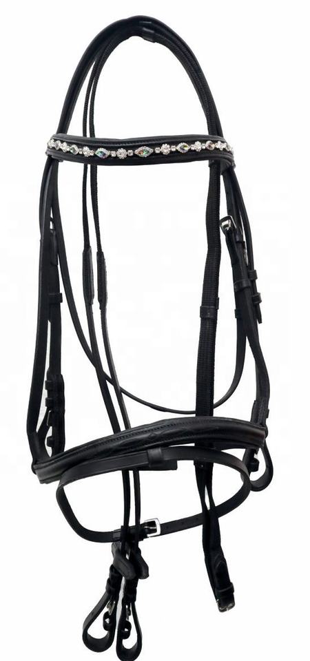 บังเหียนที่มีคุณภาพดีทำจากหนัง DD ที่มีแผ่นรองนุ่มที่แถบคิ้วและสายรัดจมูกที่มีการตกแต่งประกายเพชรคุณภาพสูงที่คิ้ว