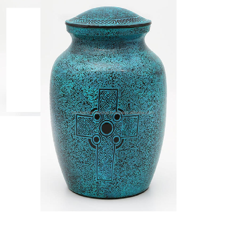 โกศสำหรับงานศพทำจากทองเหลืองดีไซน์คลาสสิกคุณภาพสูงและยอดโกศโลหะเคลือบหินอ่อนสีน้ำเงินอมเขียว