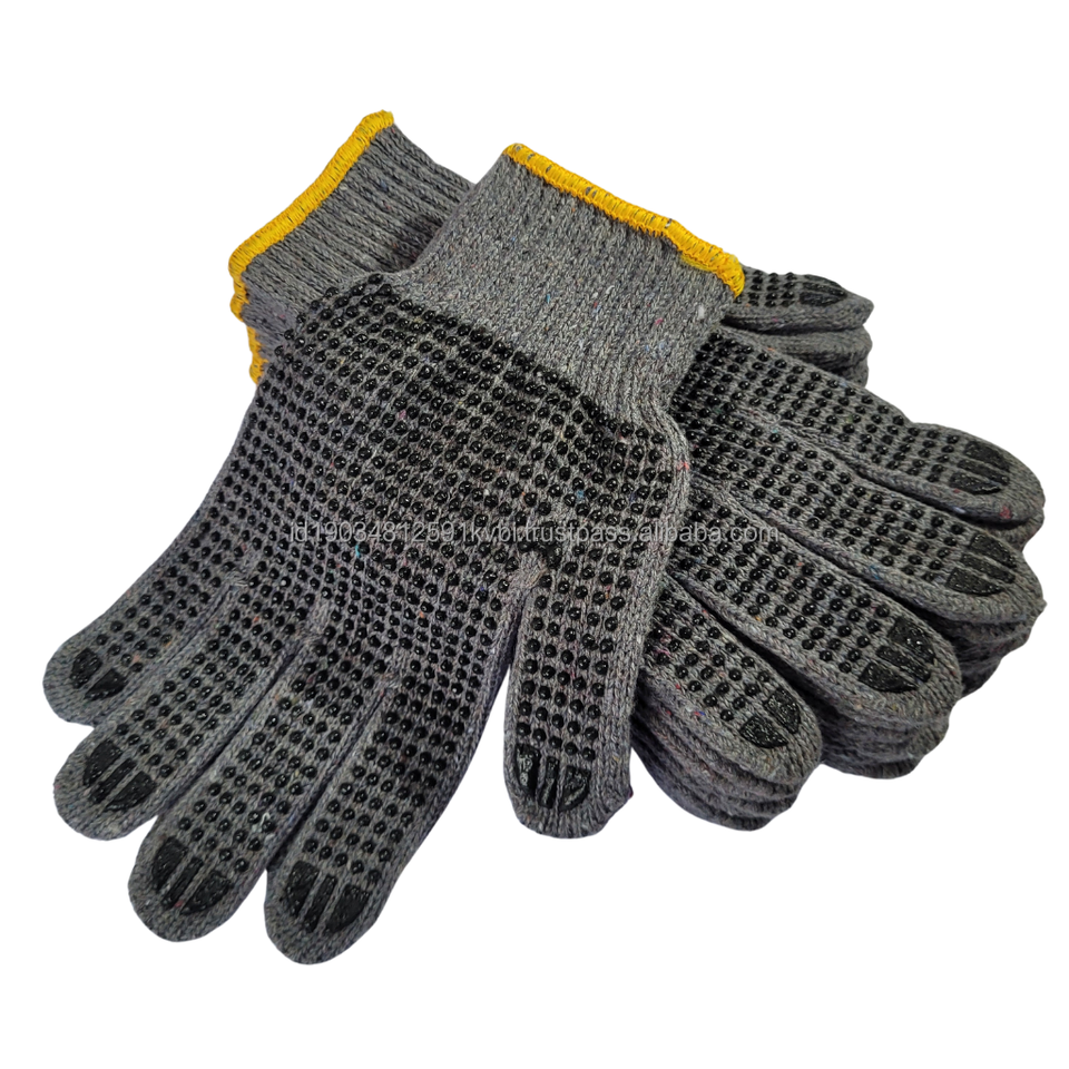 ถุงมือทำงานถักสีเทาป้องกันการลื่นป้องกันการเกิดไฟฟ้าสถิตถุงมือเพื่อความปลอดภัยทนทานต่อการใช้งานทั่วไปเป็นจุดสีดำ