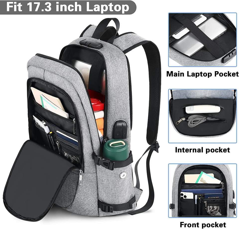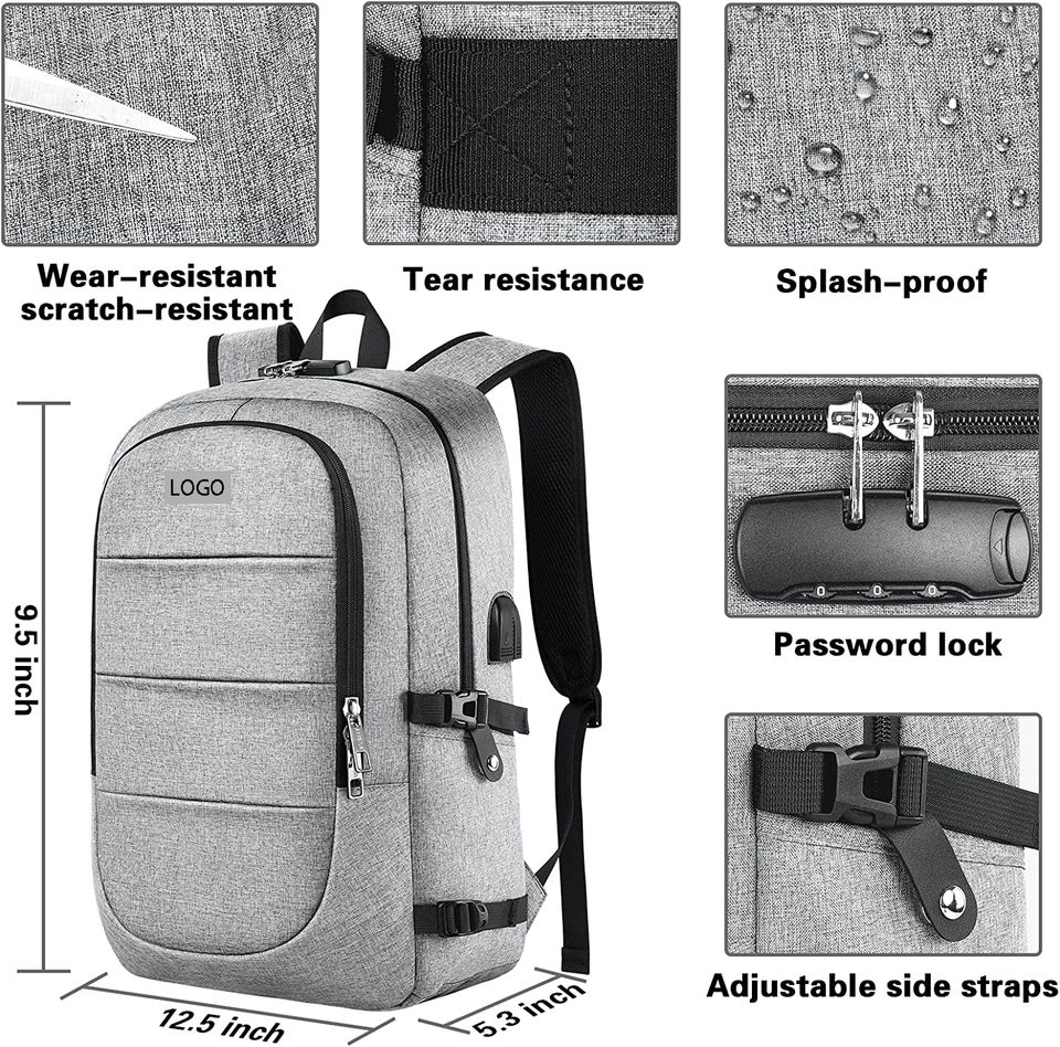 กระเป๋าเป้ใส่แล็ปท็อปกันน้ำกันขโมยมีช่องเสียบสายชาร์จ USB มีช่องซิปปิดโพลีเอสเตอร์สำหรับเดินทางไปโรงเรียนธุรกิจ