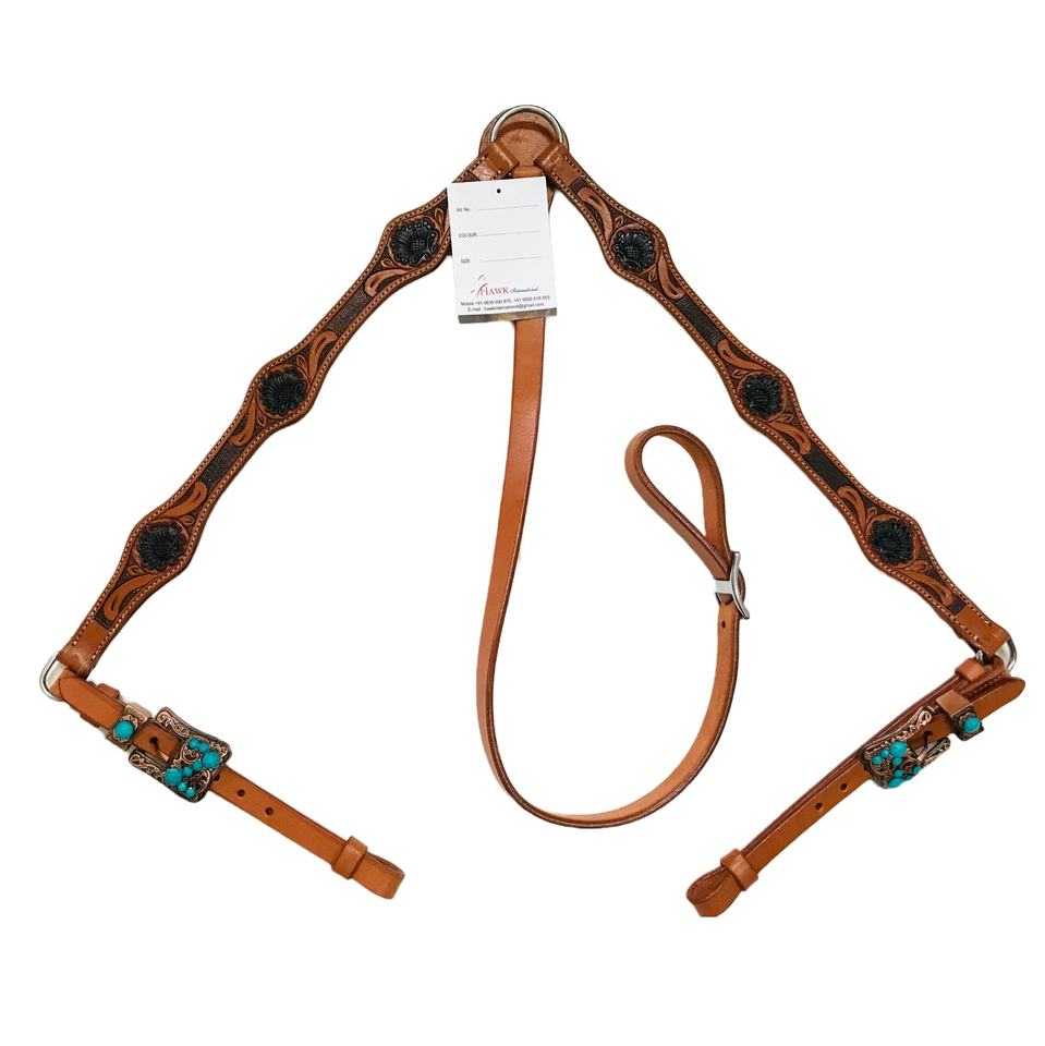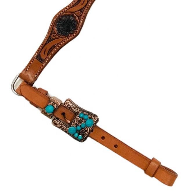 ที่สวมหัวขี่ม้าหนังแกะสลักโบราณคุณภาพสูงปกหน้าอกม้าสไตล์ตะวันตก