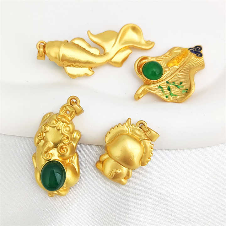 คุณภาพสูงโบราณจี้ทอง chrysoprase cabs Buddha pixiu เบบี้มังกรเขียวอาเกตสร้อยคอเครื่องประดับปลา KOI
