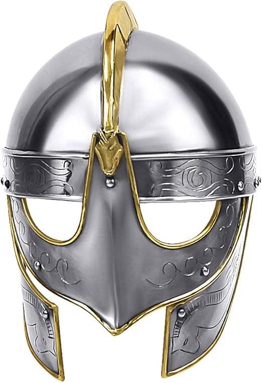 หมวกเหล็กวิกิ้งโบราณคุณภาพสูง งานแฮนด์เมด ชุดเกราะเหล็กนักรบชาวโนร์มัน สำหรับการแสดงจำลองสถานการณ์ ขาย