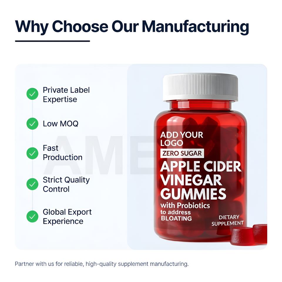 เยลลี่น้ำส้มสายชูหมักแอปเปิ้ลคุณภาพสูง รับผลิตแบบ OEM ODM แบรนด์ส่วนตัว อาหารเสริม ผู้ผลิตแบบสั่งผลิต