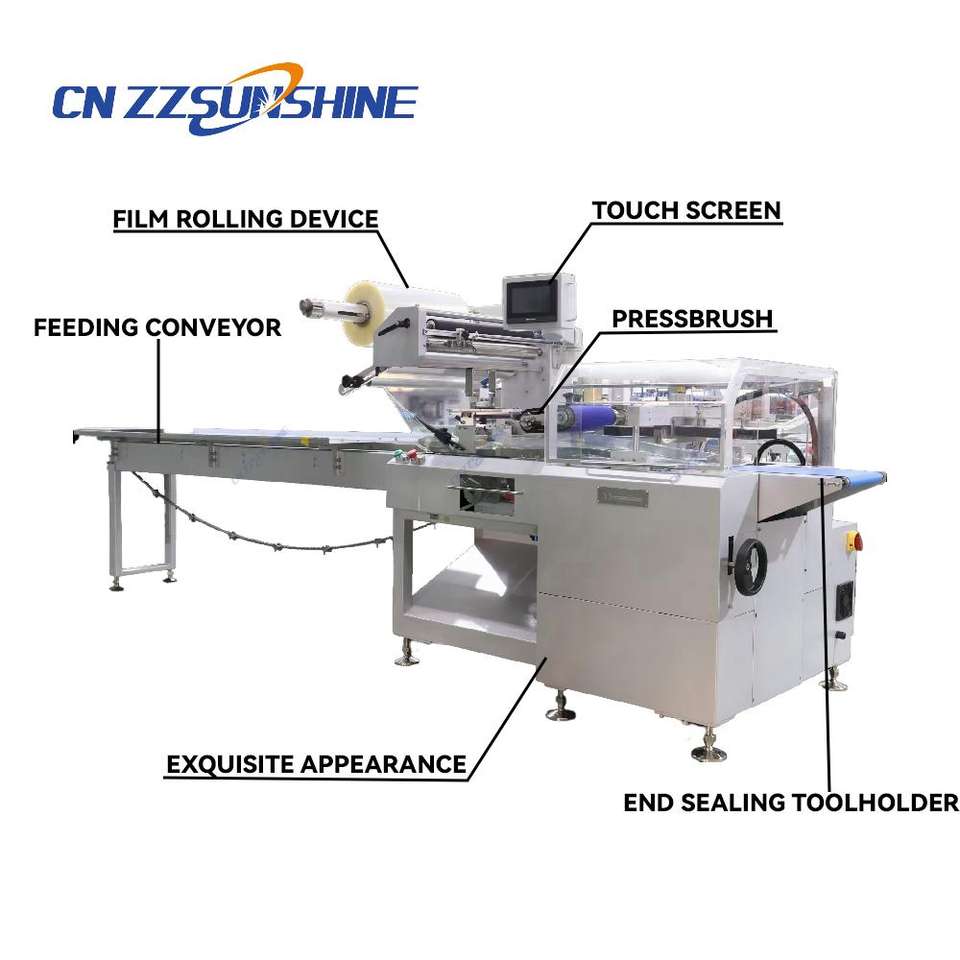 เครื่องบรรจุภัณฑ์แบบห่อแนวนอนอัตโนมัติคุณภาพสูงสำหรับสบู่ อาหาร สารเคมี ด้วยฟิล์มพลาสติก