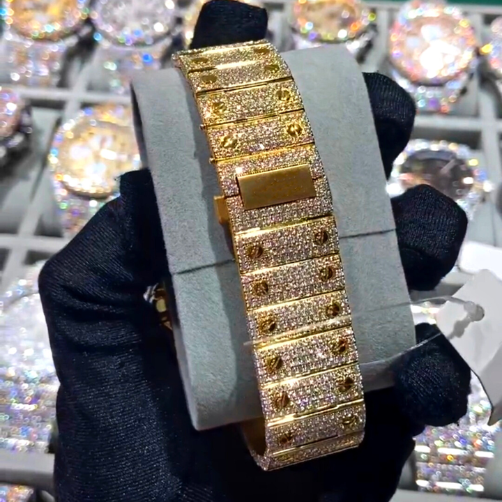นาฬิกาข้อมือสแตนเลสสตีลหรูหราสำหรับชายและหญิง ประดับเพชร VVS คุณภาพสูง ผลิตในห้องปฏิบัติการ พร้อมกลไกอัตโนมัติ งานแฮนด์เมด