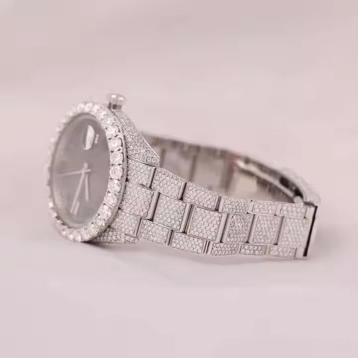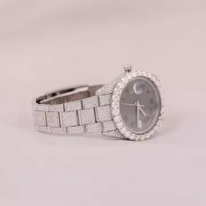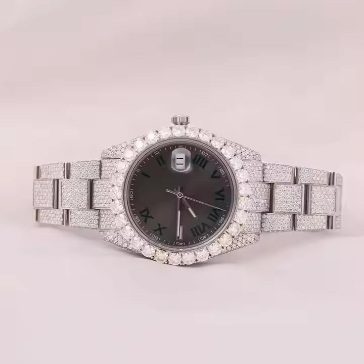 นาฬิกากลไกจักรกลคุณภาพสูงอัตโนมัติหรูหราเพชรเพชรโมอิสรูปเลขโรมันมีเอกลักษณ์สายสแตนเลส