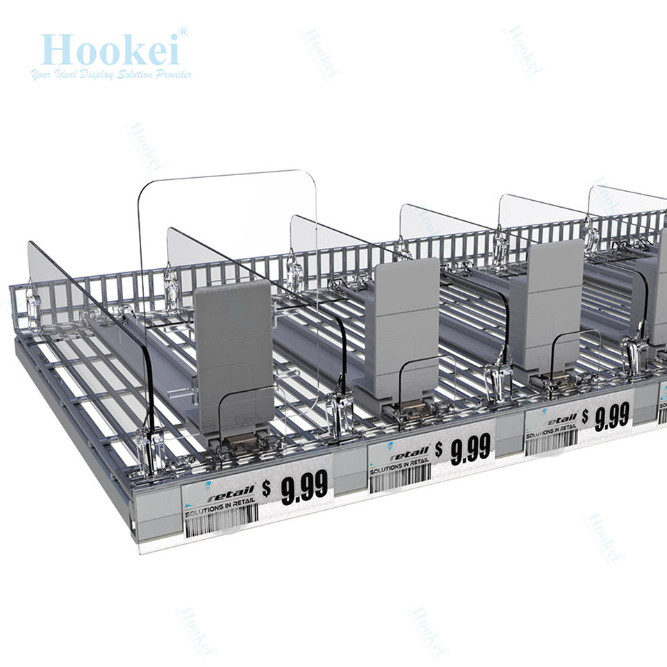 ชื่อ:ถาดอะคริลิคแบบอเนกประสงค์สำหรับซูเปอร์มาร์เก็ต พร้อมฟังก์ชันแบ่งและดันสินค้า ราคาประหยัด