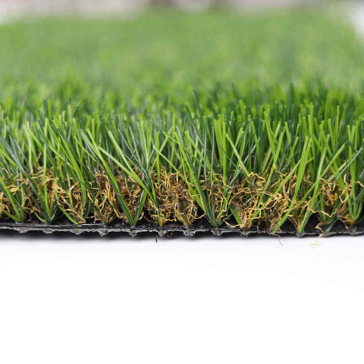 พรมสนามหญ้าเทียมสีเขียวฤดูใบไม้ร่วงวัสดุ PE กันน้ำสำหรับสนามหญ้าในร่มสวนสนามพักผ่อน