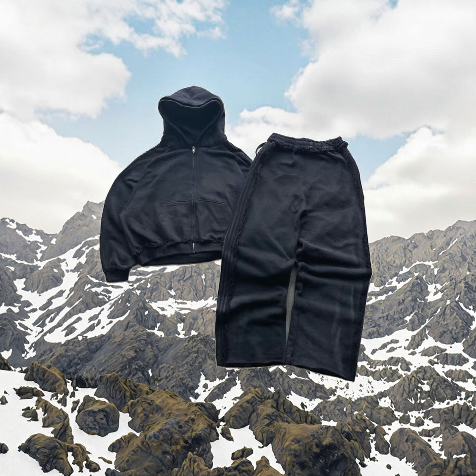 ชุดเซ็ตเสื้อฮู้ดดี้โอเวอร์ไซส์แบบสวมหัวและกางเกงขายาวทรงกว้างผ้าถักคุณภาพสูงสำหรับฤดูใบไม้ร่วง