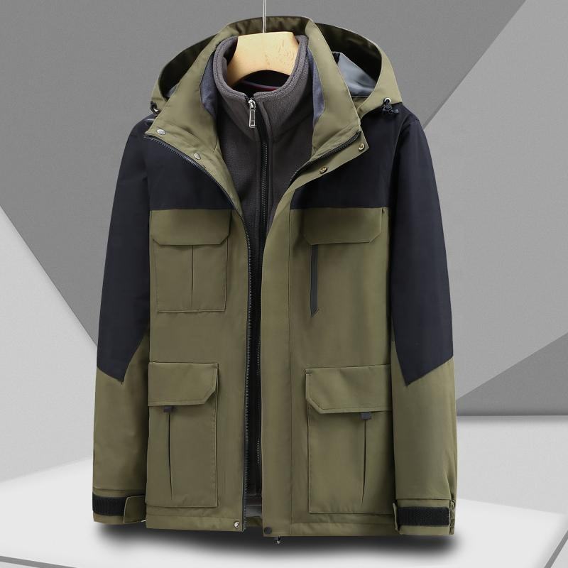 เสื้อแจ็คเก็ตกันลมมีฮู้ดสำหรับผู้ชายคุณภาพสูง ไซส์ใหญ่พิเศษ สำหรับฤดูใบไม้ร่วง/ฤดูหนาว กันน้ำและระบายอากาศได้ดี ผลิตจากโพลีเอสเตอร์ 100%