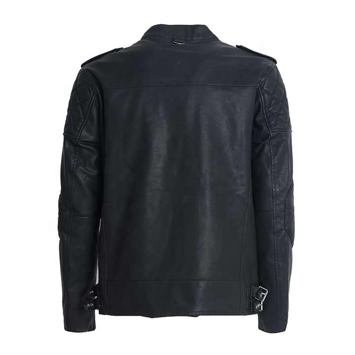 แจ็กเก็ตมอเตอร์ไซด์ของผู้ชายเสื้อแจ็คเก็ตหนังเทียมปกตั้งแบบคลาสสิกสำหรับฤดูใบไม้ร่วงและฤดูหนาว