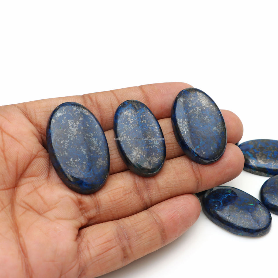 อะซูไรต์คุณภาพสูงแบบหลวมทรงคาโบชอง สีฟ้าอมม่วงธรรมชาติ เปลี่ยนสีได้ ด้านหลังแบน รับรองโดยบุคคลที่สาม สำหรับทำเครื่องประดับ