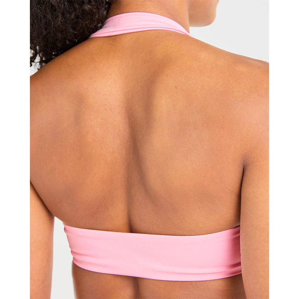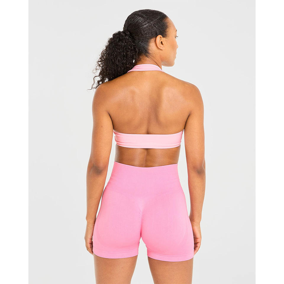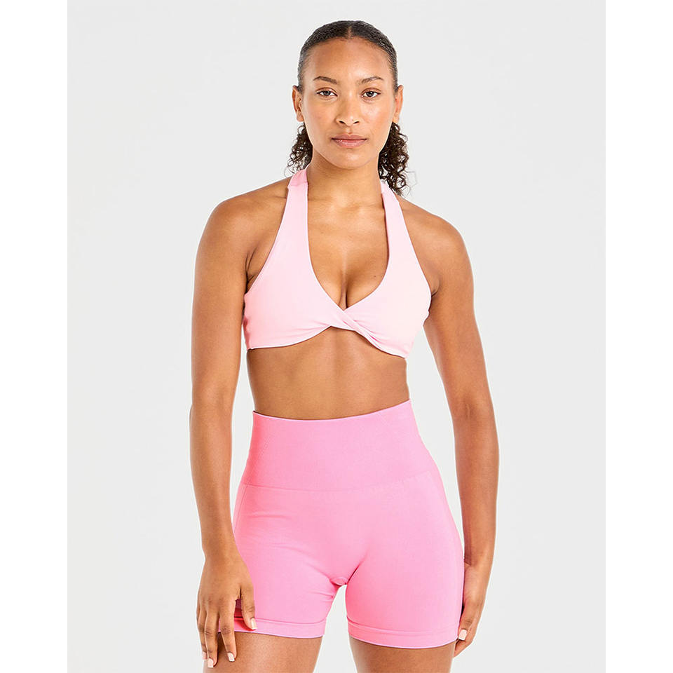 สปอร์ตบราคล้องคอสีชมพูสำหรับเด็กทารกเสื้อเปิดหลังคอวีเปิดด้านหลังมีแรงกระแทกสูงสำหรับผู้หญิงและผู้ใหญ่