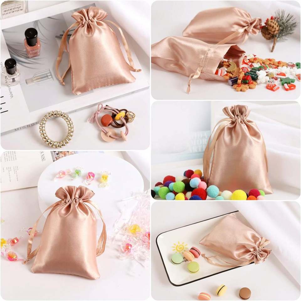 ถุงผ้าซาตินสีโรสโกลด์ขนาดเล็กคุณภาพสูงสำหรับใส่เครื่องประดับ เหมาะสำหรับงานเลี้ยงฉลองวันวาเลนไทน์
