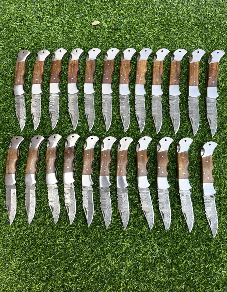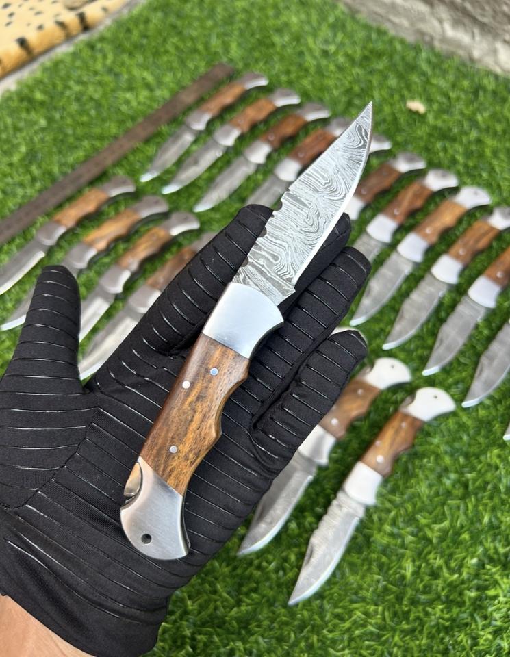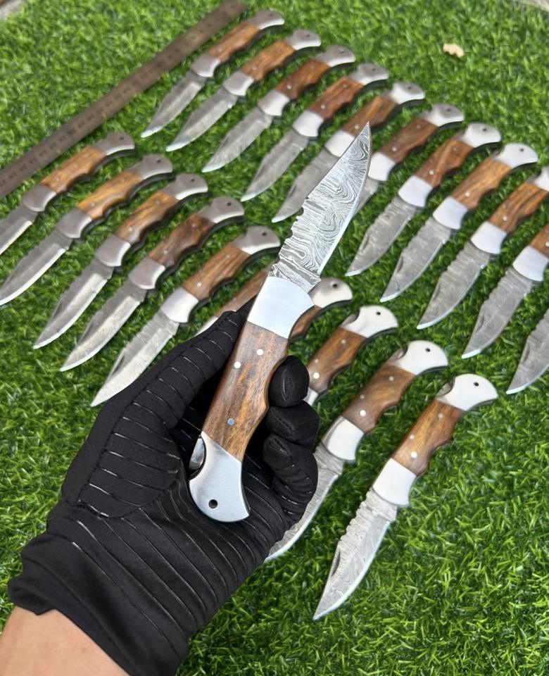 มีดพับคุณภาพสูง ดามัสกัสสตีล ด้ามไม้ ขนาด 17 ซม.