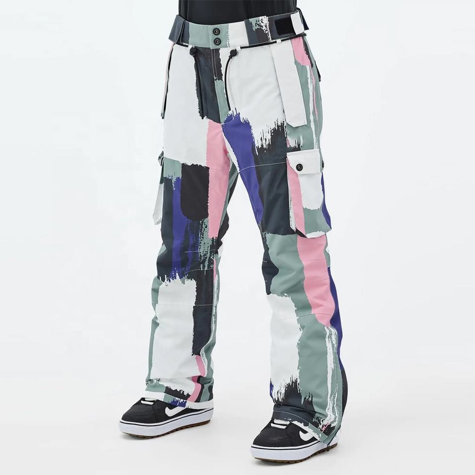 กางเกงสกีทรงหลวมกันน้ำสำหรับผู้หญิงเสื้อผ้าฤดูหนาวเล่นสกีสโนว์บอร์ด