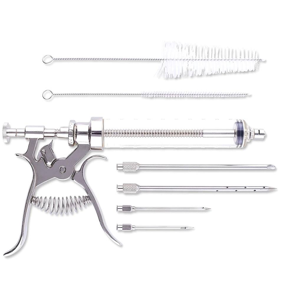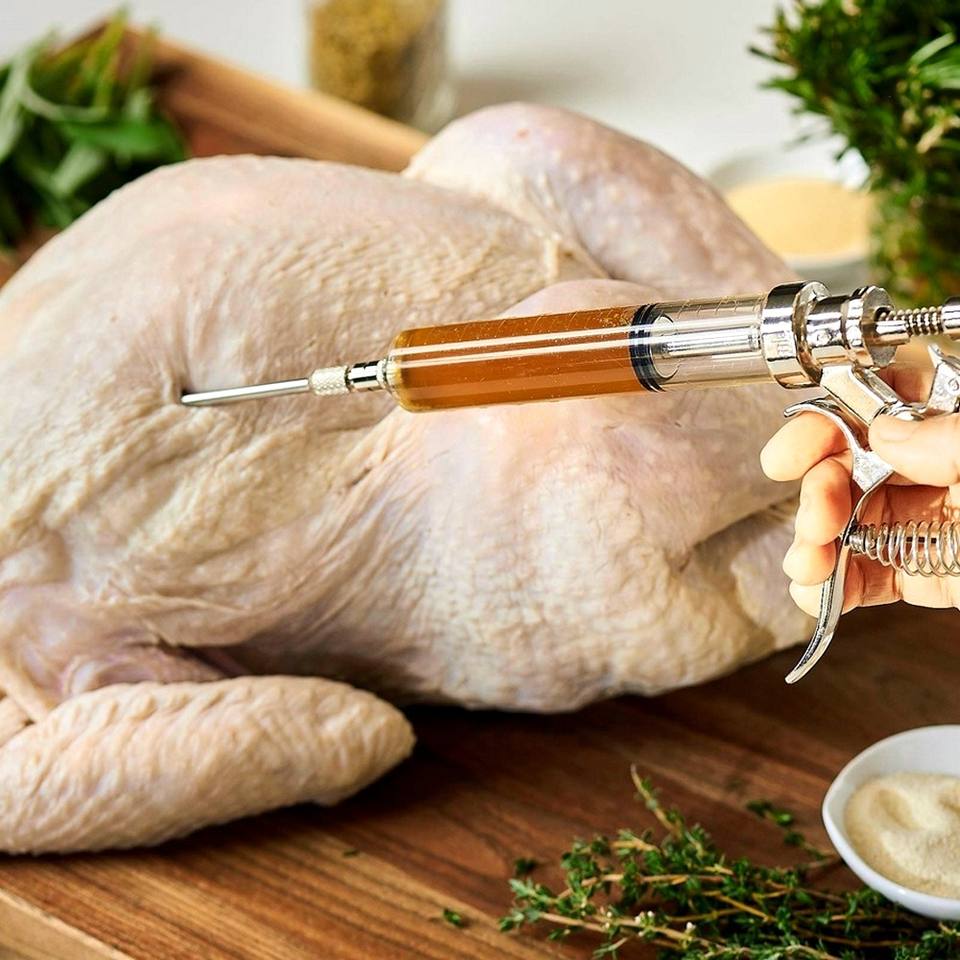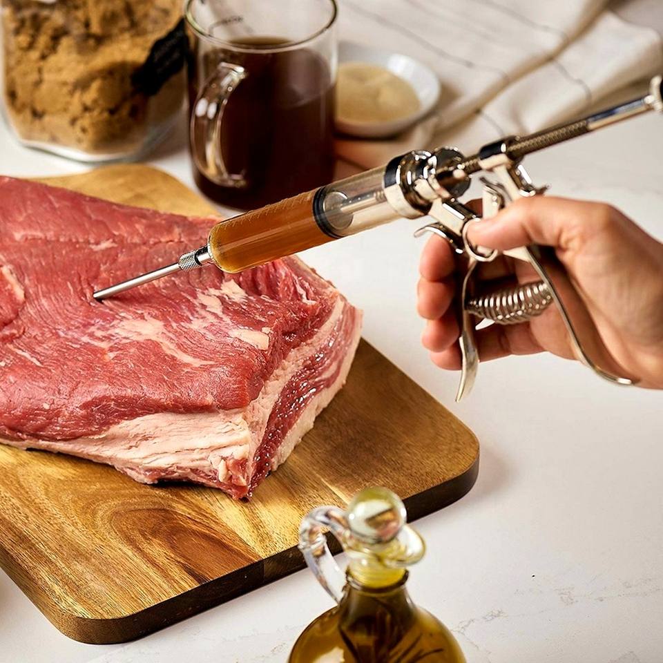 อุปกรณ์เสริมเตาบาร์บีคิวคุณภาพสูง ปืนฉีดน้ำหมักเนื้อสแตนเลส สำหรับไก่งวง ไก่ และเนื้อสัตว์