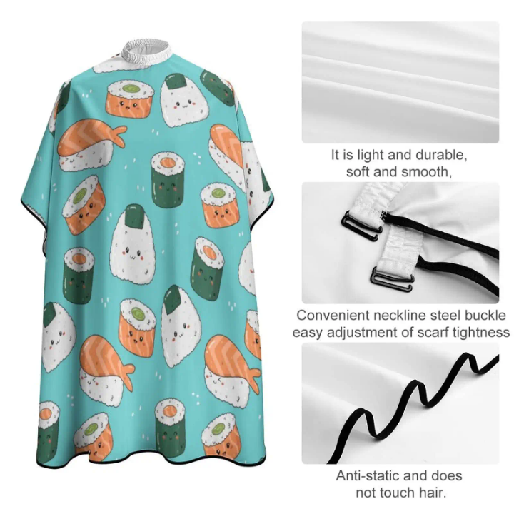 ผ้าคลุมตัดผมทำจากโพลีเอสเตอร์กันน้ำคุณภาพสูงมีคุณสมบัติป้องกันไฟฟ้าสถิตย์ปรับแต่งได้