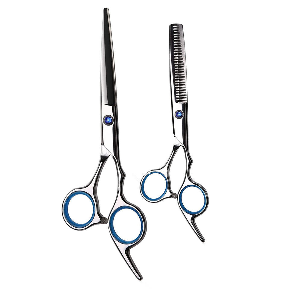 ชุดกรรไกรตัดผมแบบบางสีเงินชุดช่างตัดผมที่สวยงามพร้อมที่วางนิ้ว