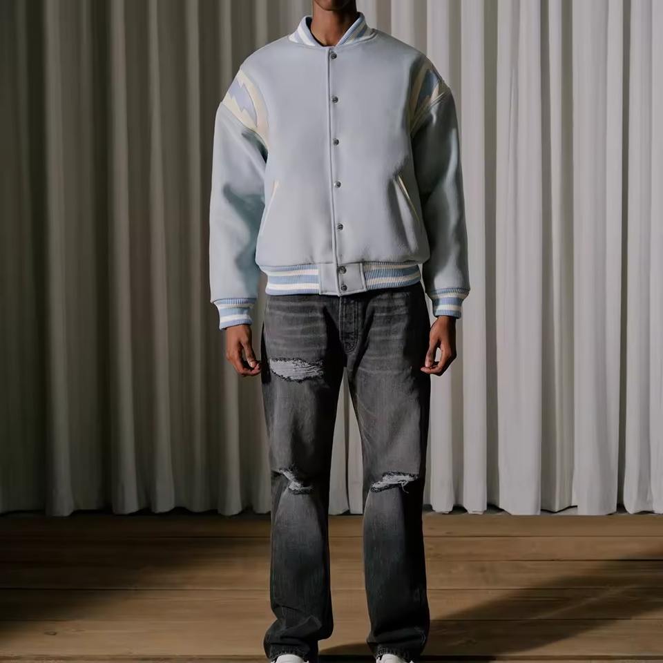 แจ็คเก็ตเบสบอลคุณภาพสูง พิมพ์โลโก้ตามสั่ง แจ็คเก็ตเรียบง่าย แจ็คเก็ตกันลมสำหรับผู้ชาย เหมาะสำหรับฤดูใบไม้ผลิและฤดูใบไม้ร่วง