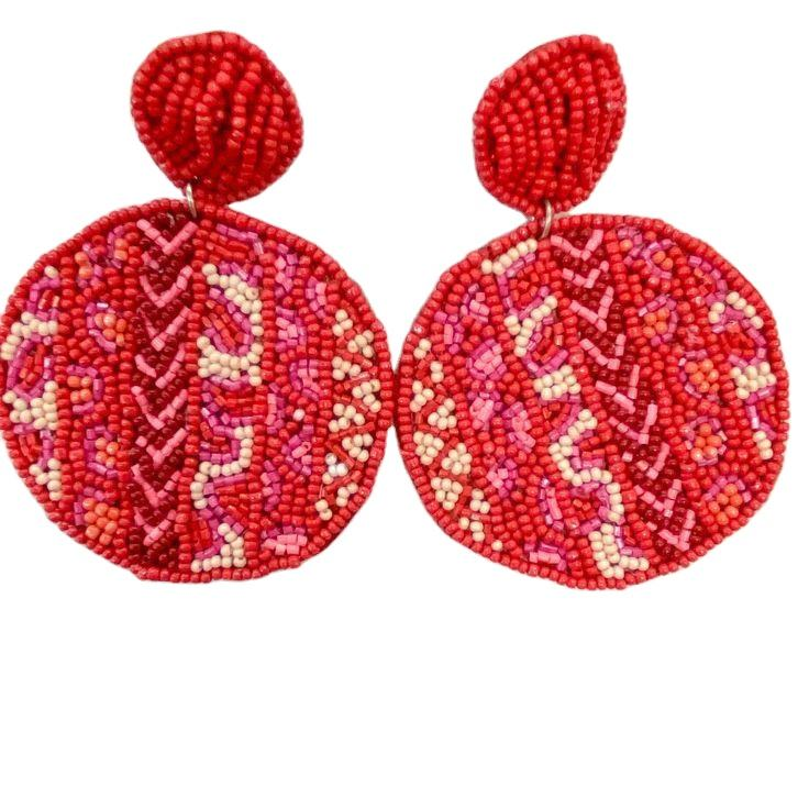 ต่างหูลูกปัดปักลายลูกปัดสีแดงงานแฮนด์เมดคุณภาพสูงดีไซน์สวยสง่าจากอินเดีย