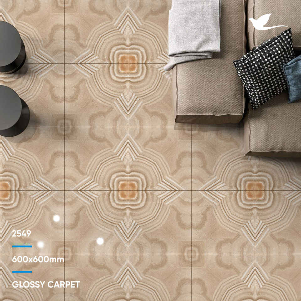 กระเบื้องเคลือบสีเบจสำหรับร้านอาหารและวิลล่าดีไซน์ทันสมัยขัดเงาจากซัพพลายเออร์อินเดีย