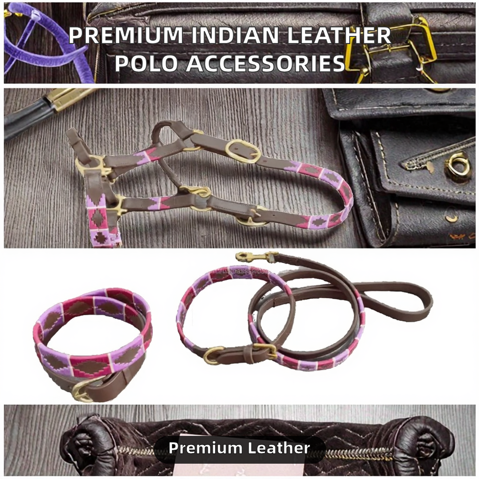 ชุดอุปกรณ์โปโลคุณภาพสูง ยี่ห้อ FHS หนังอินเดียเย็บมือ ประกอบด้วยสายจูงม้า ปลอกคอสุนัข สายจูง และเข็มขัดโปโลแบบยูนิเซ็กซ์