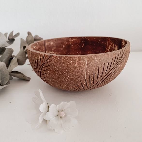 ชามกะลามะพร้าวแบบเป็นมิตรต่อสิ่งแวดล้อมงานหัตถกรรมจากเวียดนามแกะสลักทำด้วยมือขัดเงา