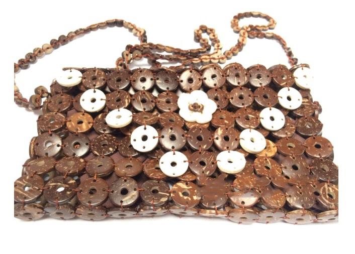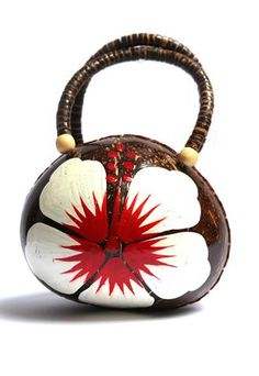 คุณภาพสูงที่ขายดีที่สุดกระเป๋ามะพร้าวทําด้วยมือกะลามะพร้าวฮาวาย Aloha ซิปและซับทาสีด้วยดอกไม้จากเวียดนาม