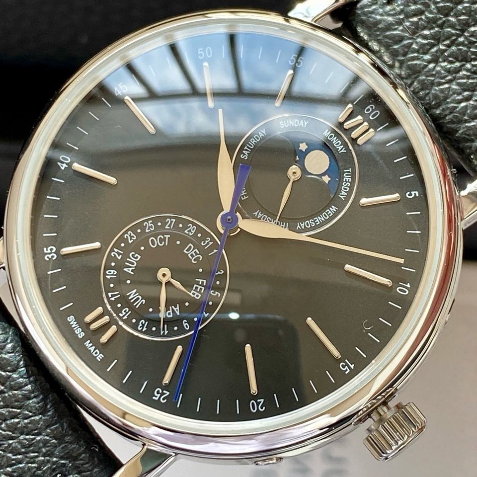 นาฬิกาข้อมือดีไซน์แฟชั่นระบบกลไกแสดงข้างขึ้นข้างแรม คุณภาพสูง ขายดี พร้อมสายสีดำ