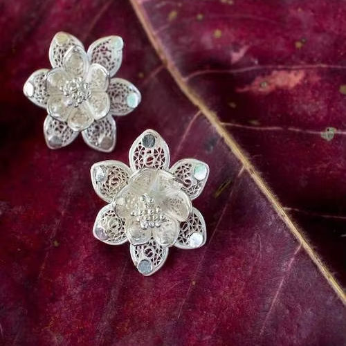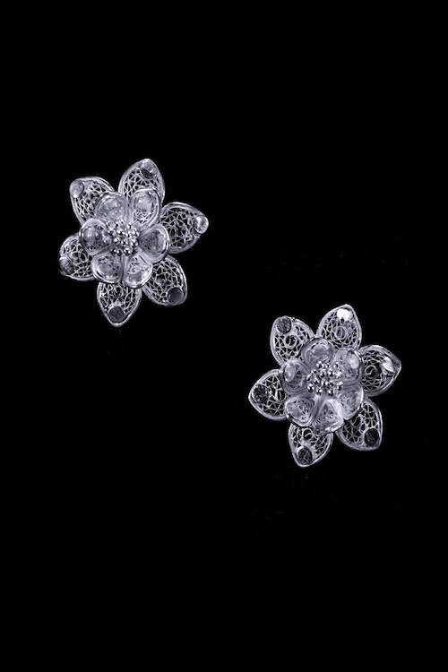 Type:Silver Linings Lotus Studs Silver Filigree Earrings