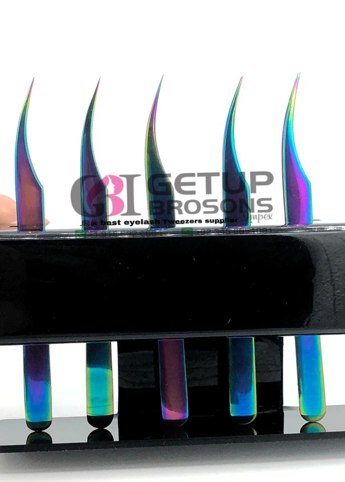 แหนบต่อขนตาสแตนเลสพลาสม่าสีรุ้งแยกสไตล์ที่ปรับแต่งโลโก้ได้
