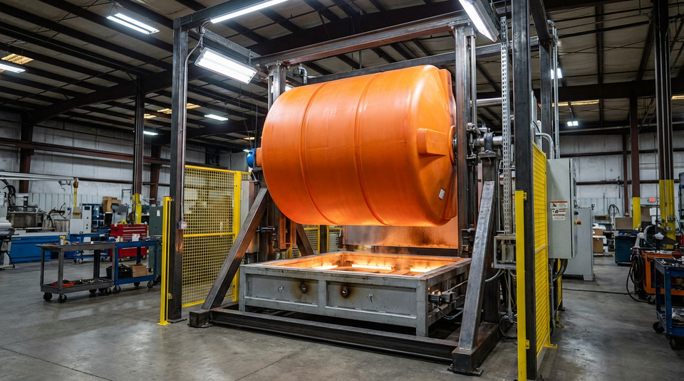 เครื่องขึ้นรูปพลาสติกแบบหมุนสองแกนคุณภาพสูง ประหยัดต้นทุน พร้อมอุปกรณ์ถังแบบ Loft ที่มีกล่องเกียร์หลัก ส่งออกโดยตรง