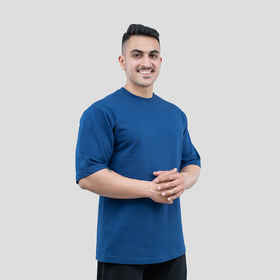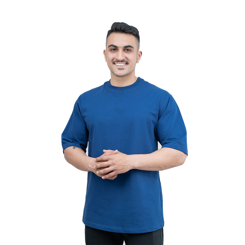 High Quality Big Size Microfiber T Shirt Blue Color Pullover Half Sleeve Tall T Shirt for Adult Mens Custom Logo Sportswear